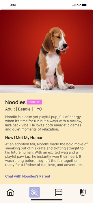 Pet Matching: Use the pet-matching feature to search for a pet that matches your preferences using the available filters.